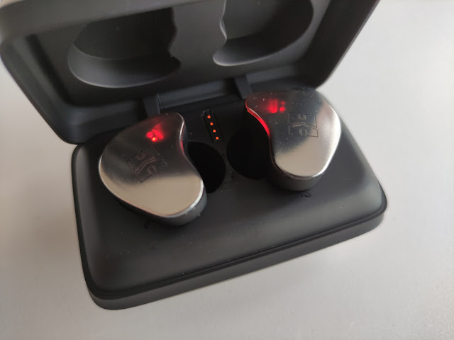 Por último, en cuanto a funcionalidad, conectan rápidamente, no he experimentado caídas ni cortes durante la reproducción y también han hecho el interior de la funda más grande (los huecos para los IEM) lo cual permite guardar/cargar los IEM incluso con las puntas más grandes instaladas (algo que era imposible con los TWS600). Pero... en el otro lado de la moneda, este espacio extra significa que tienen más posibilidades de moverse dentro de su funda cuando se transportan. Han habido algunas ocasiones cuando los llevaba en su funda dentro de mi bolso y se han movido ligeramente, esto los enciende y automáticamente conectan con mi móvil.